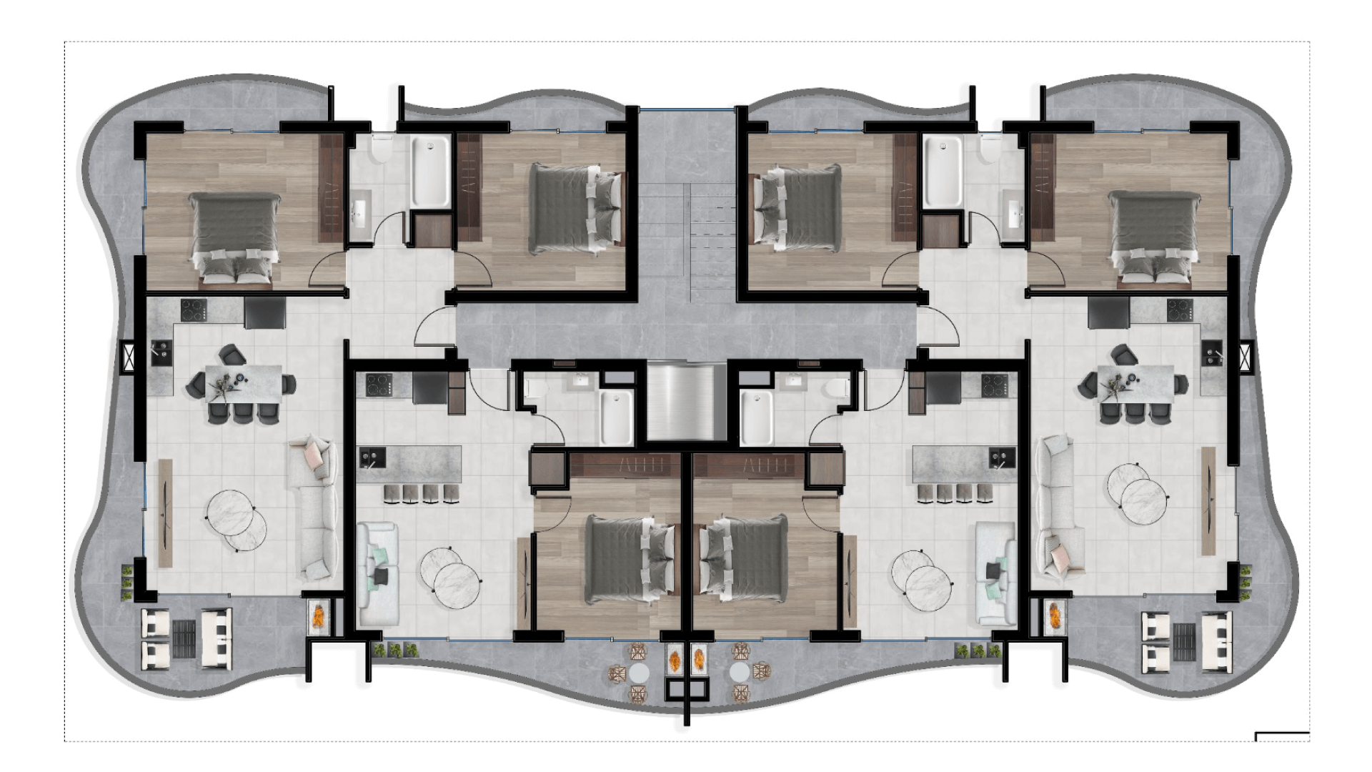 Что вы получаете: К Вашим услугам прекрасные и невероятно просторные апартаменты, простирающиеся на величину всего этажа, с личной террасой и незабываемым панорамным видом на город.