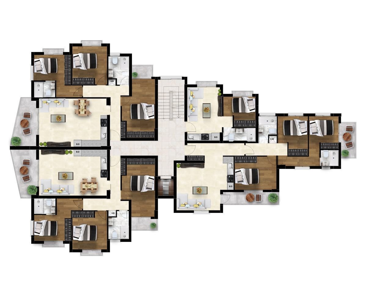Каждый апартамент оснащен частной парковкой, обеспечивая удобство и безопасность. Центральное расположение комплекса обеспечивает легкий доступ ко всем удобствам центра города, делая его идеальным выбором для тех, кто ищет комфортный и удобный образ жизни.